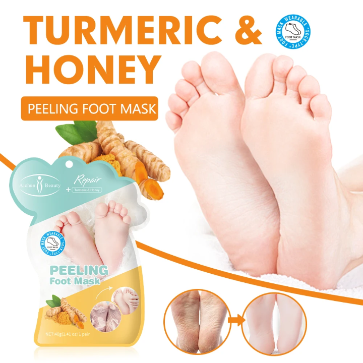 Aichun Beauty Peeling Foot Mask (1 Pair) – Turmeric & Honey