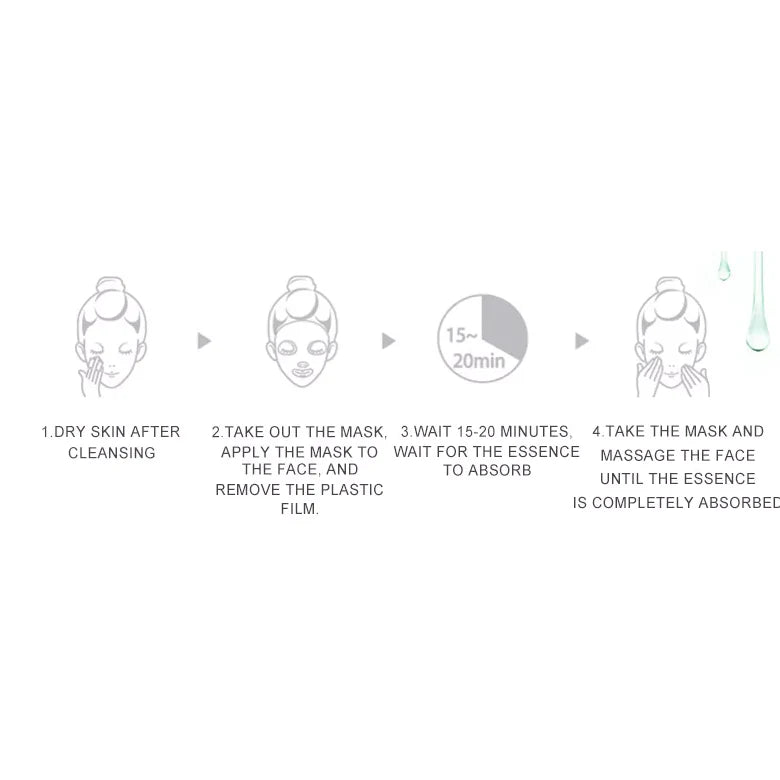How To Use : Cleanse skin and dry thoroughly. remove mask from packaging. There is total 2 layers of face mask, take down the white pearl film, spread the silk mask out and apply carefully onto the face, resting on the face for 15-20 minutes. Take off the mask and gently pat the face, excess serum can be applied to neck, shoulder and hands. Face sheet to be used only once.